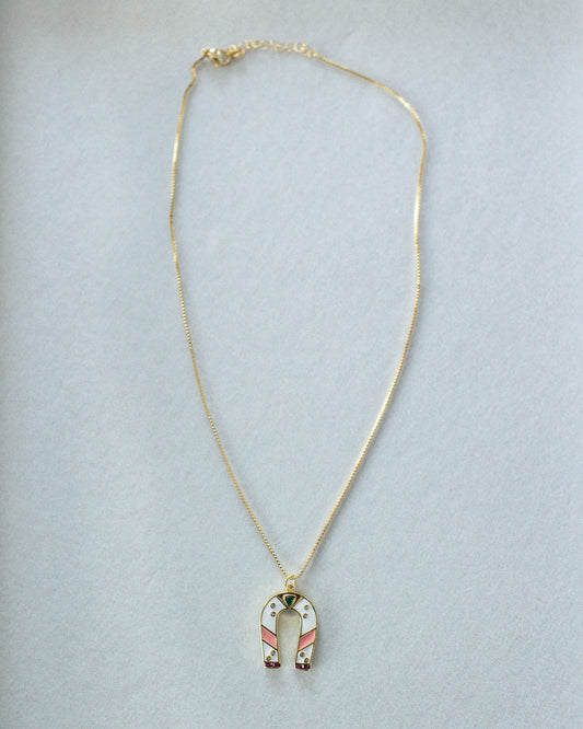 Colorful 18K Gold Filled & Acrylic Horseshoe Pendant Necklace