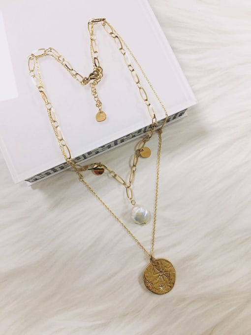 18K Gold Plated Stainless Steel Freshwater Pearl Multi Strand Necklace