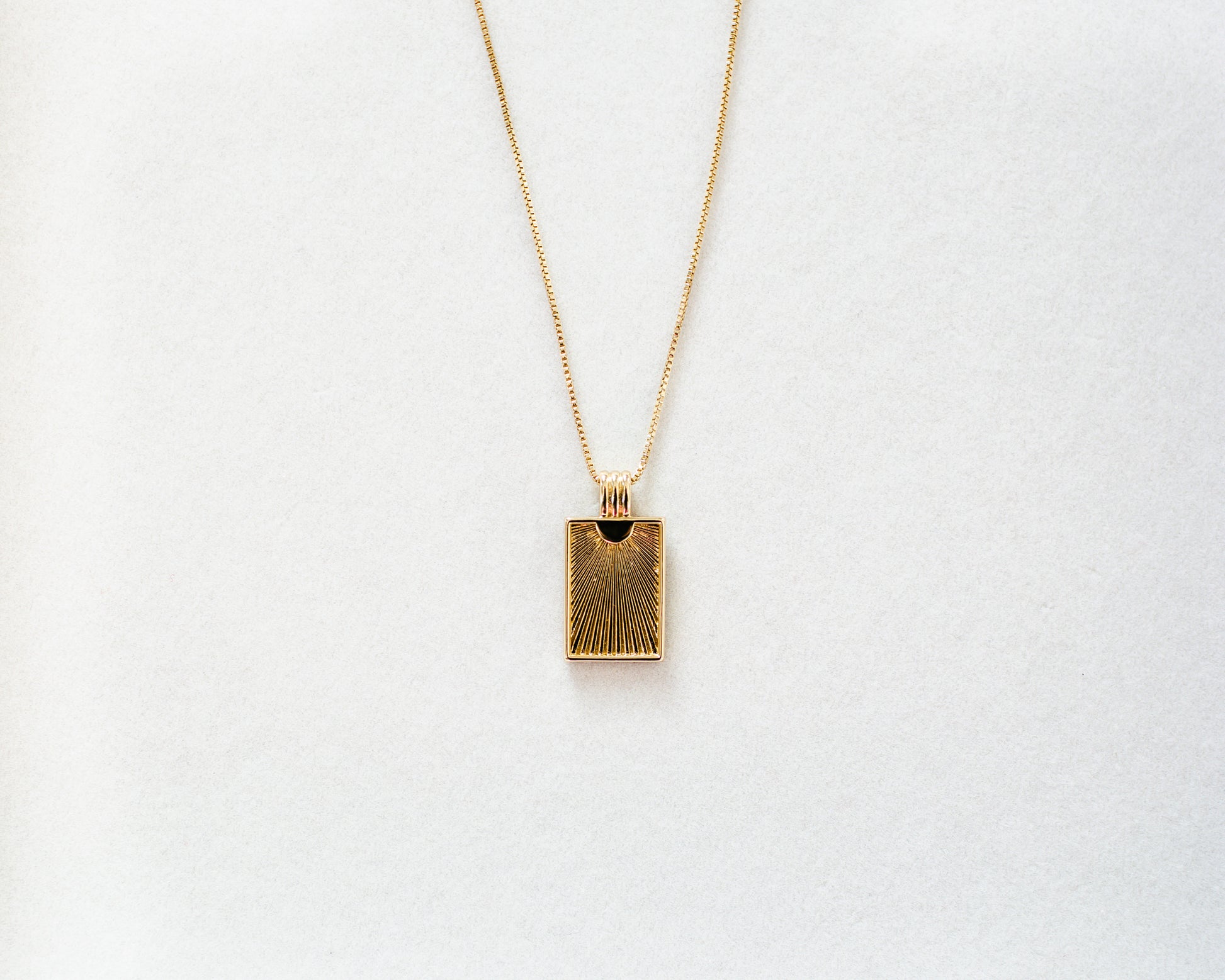 Shine bright with our 18K Gold Filled Rectangle Sun Ray Necklace. This waterproof, tarnish resistant and hypoallergenic necklace is the perfect accessory for any occasion. Don't worry about allergies or maintenance, just enjoy the radiant look!
